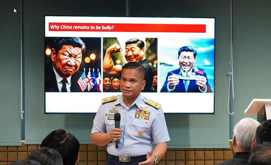 フィリピン当局者が中国の習近平国家主席の風刺画像を公開したことをきっかけに、両国が非難合戦を繰り広げている。発端は、比沿岸警備隊のタリエラ報道官が14日にSNSに投稿した写真だ。講演する同氏の背後には、習氏が米国や英国の国旗をにらみつける風刺画像とともに、「なぜ中国はいじめを続けるのか」と書かれたモニターが掲示されていた。