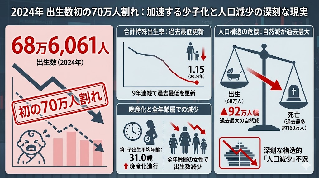 ・2024年の出生数は68万6,061人で初の70万人割れ